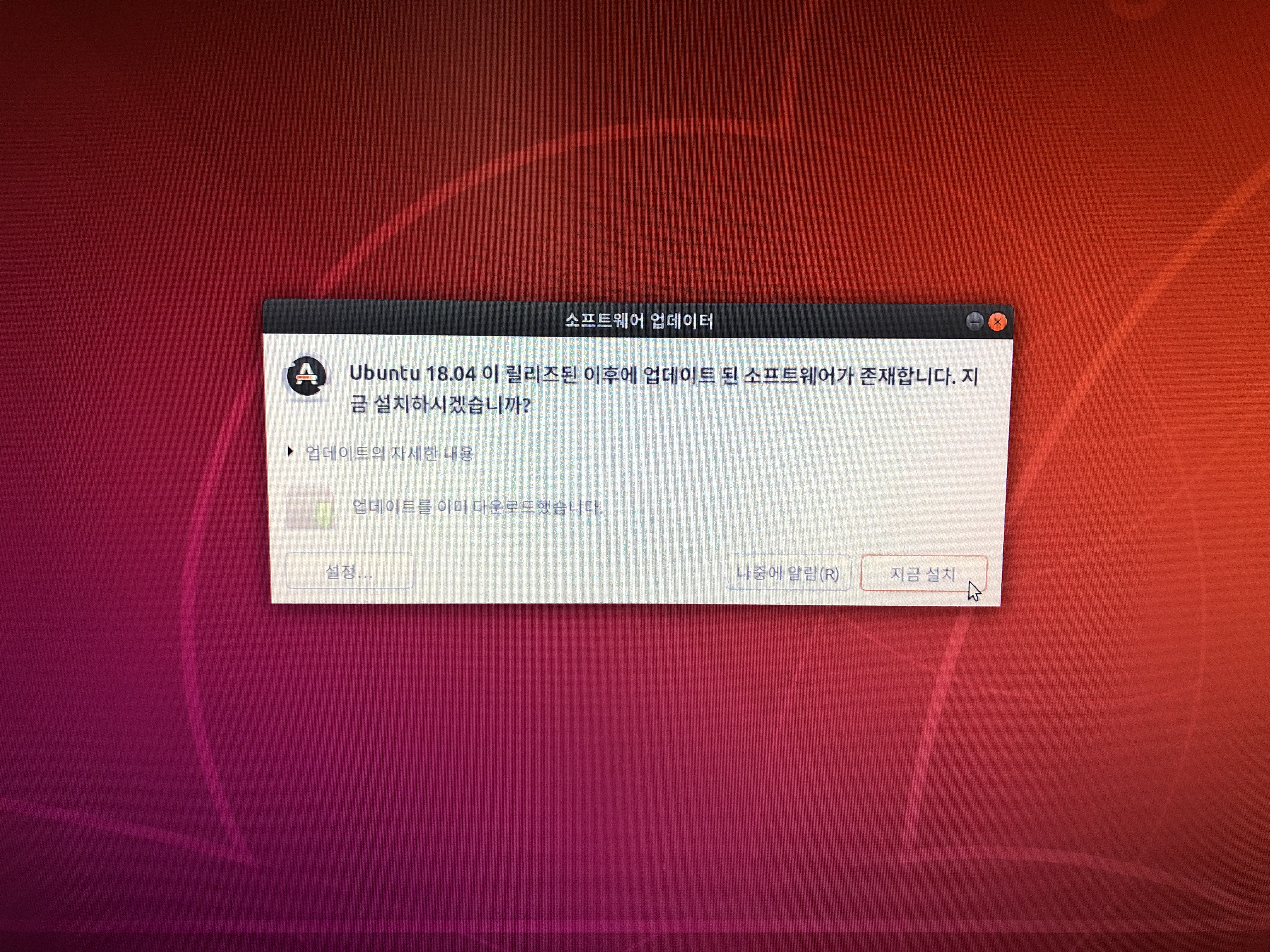 소프트웨어 업데이터가 뜨면 지금 설치를 클릭