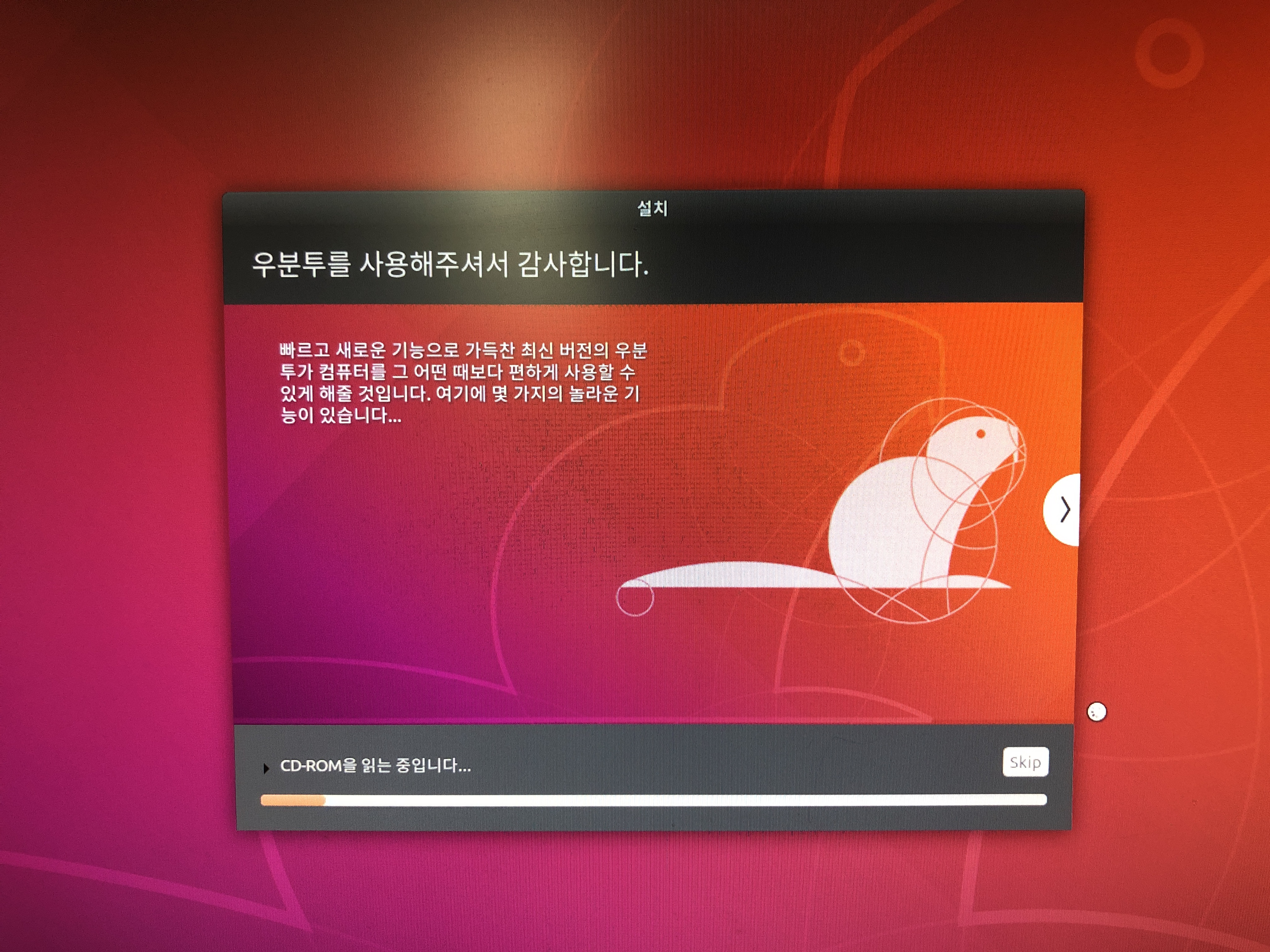 위 화면이 나오면 한국어를 선택한 후 Ubuntu 설치 버튼을 클릭합니다.