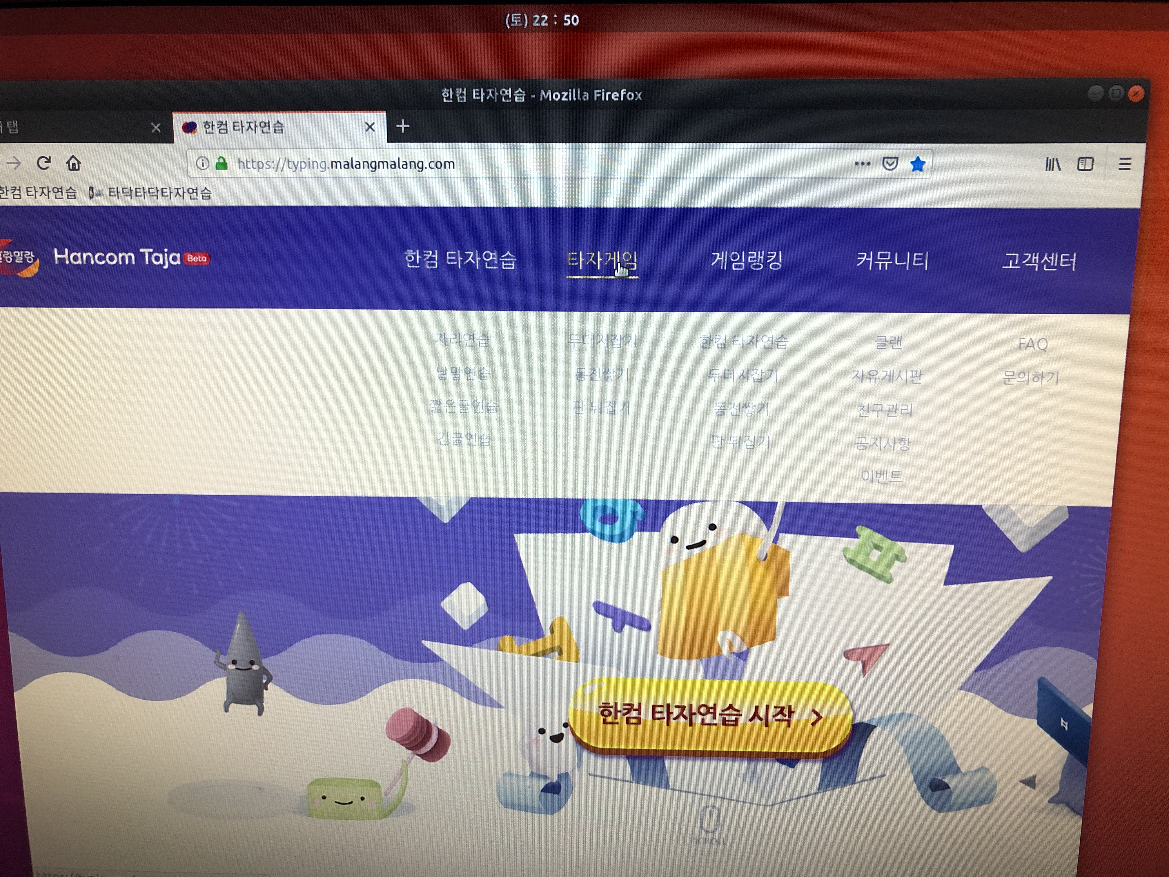 아이 컴퓨터로 우분투를 설치하니 가장 큰 문제가 한글 타자연습이더군요. 그래서 리눅스에서도 할 수 있는 (정확하게 말해서 웹 브라우저로 할 수 있는) 타자연습을 찾아봤습니다.